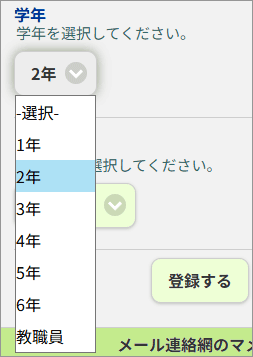 マメールなら、登録画面で「2年生」と「5年生」のように、複数の項目にチェックを入れるだけで設定が完了します。お子様ごとに何度も登録し直す手間がありません。